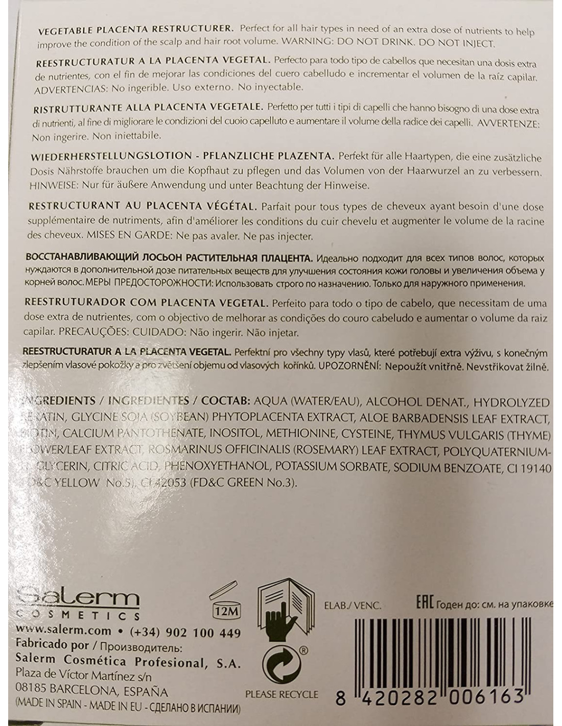 SALERM HAIRLAB PLACENTA VEGETAL HAIRLAB 4X13ml.