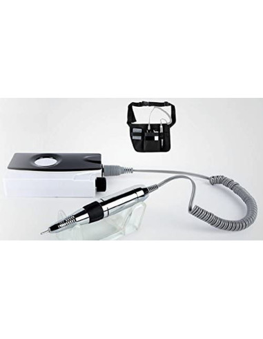 Torno profesional diseñado para su uso en manicura y pedicura. Puede usarse de manera manual o con pedal. Silencioso y cómodo, ofrece un alto rendimiento y precisión. Su agarre confortable, interruptor de giro (derecha e izquierda), pantalla LCD con regulador de velocidad de 0 a 35.000 rpm, hacen que el trabajo sea más rápido y cómodo para el profesional. Posee un soporte de apoyo en el que colocar el torno y las fresas, y gracias a su asa incorporada hace fácil su desplazamiento. Es compatible con cualquier tipo de fresa estándar.